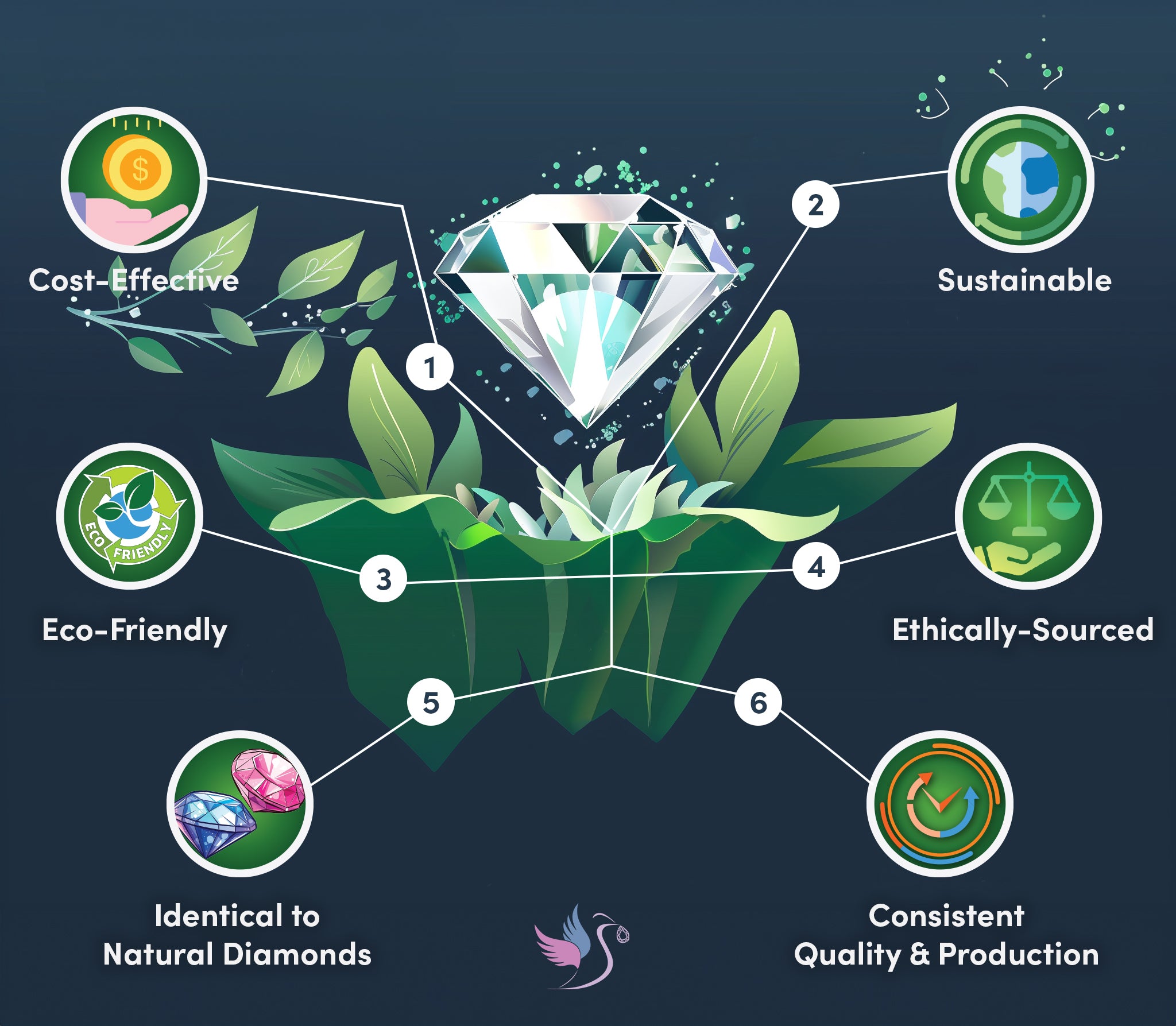 Same sparkle, lower price. Lab-grown diamonds have the same physical and chemical properties as mined diamonds, resulting in the same brilliance and fire.