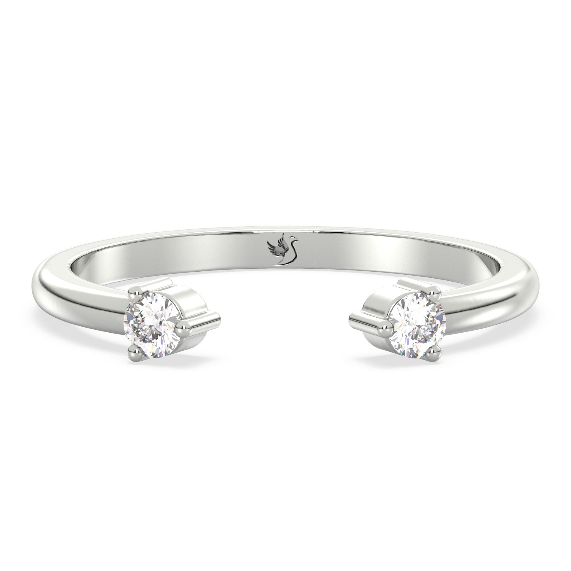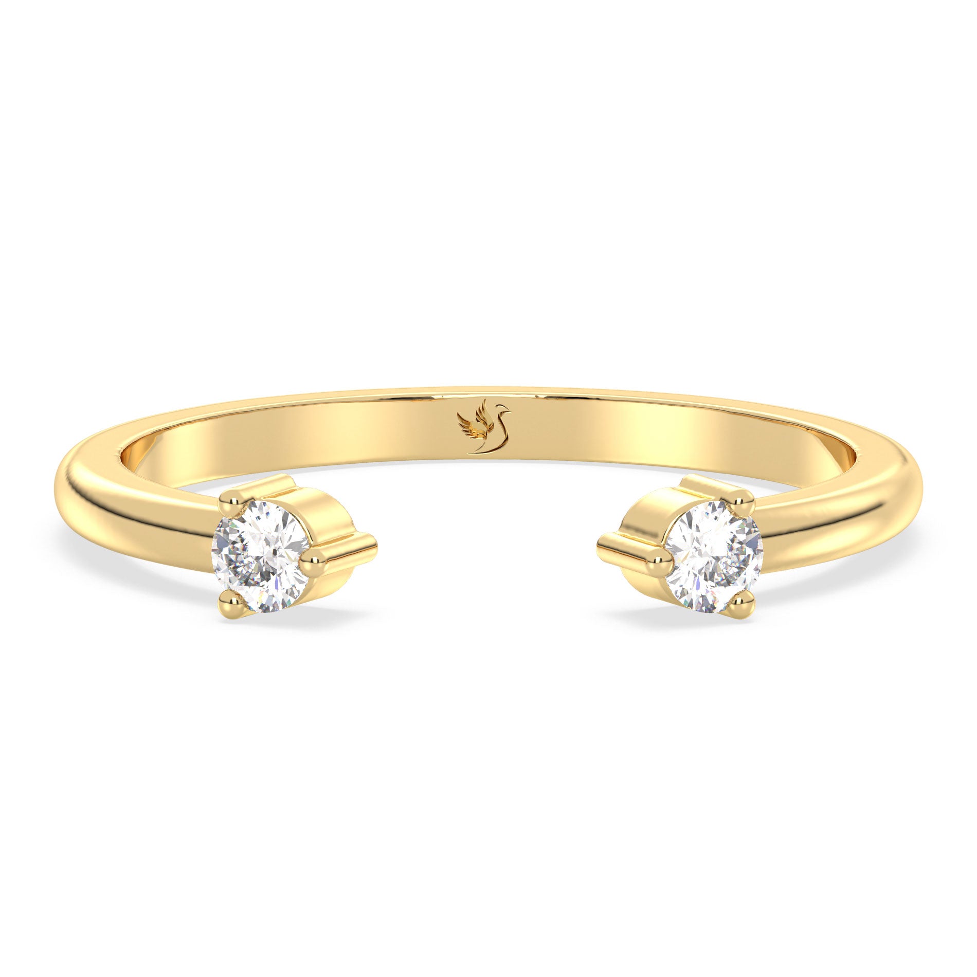 Featuring two brilliant-cut diamonds set in a modern, open-band design, this ring offers a minimalist yet striking silhouette. Perfect for stacking or making a solo statement.