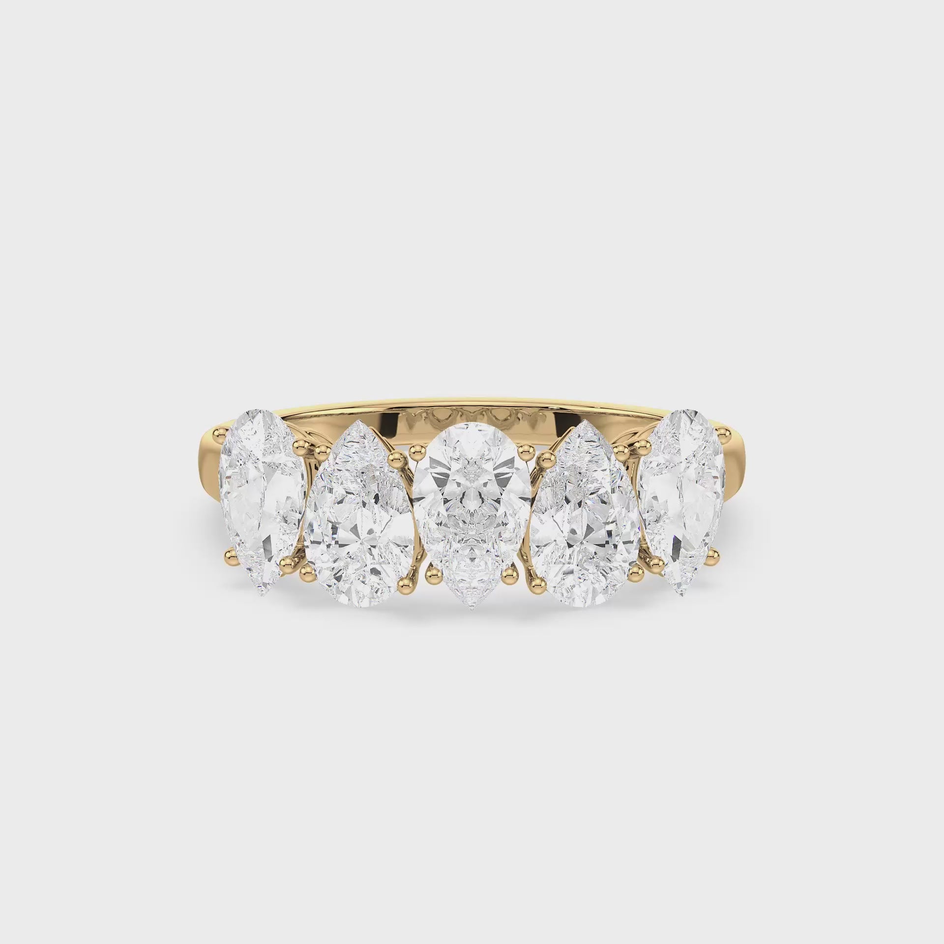 A symphony of luster designed for the discerning eye. This captivating ring showcases five pear-shaped diamonds which will surely turn heads.