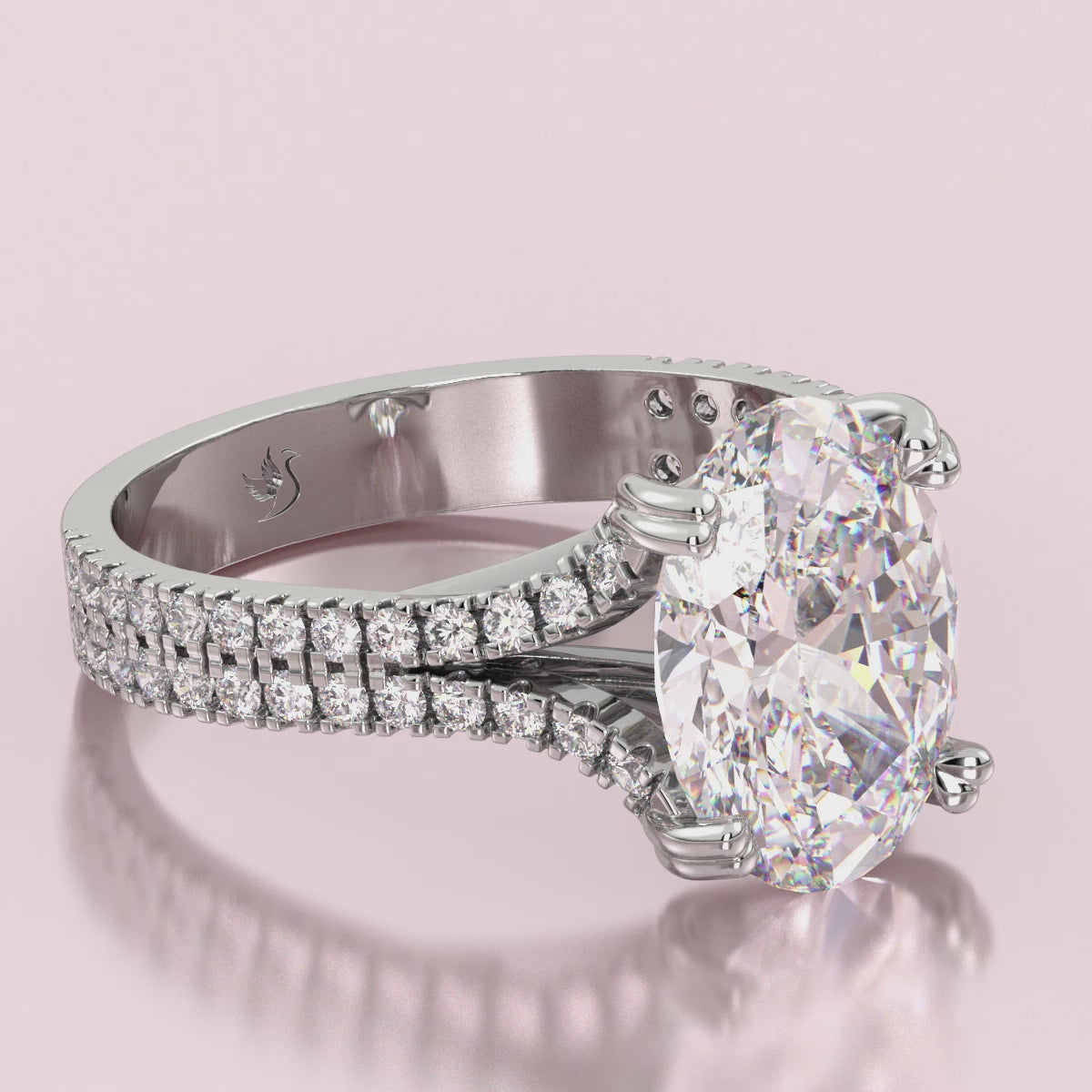 This stunning engagement ring features a breathtaking 3-carat oval cut diamond, captivating all eyes with its brilliance. The elegant split shank design adds a touch of modern sophistication, allowing the magnificent center stone to take center stage.